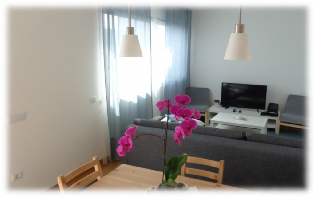 So they open the door, and a beautiful orchid greets them. Two glasses and a Portuguese wine invite them in. A hammock hangs on the balcony… and the sea outside awaits them. This is Figueira da Foz.